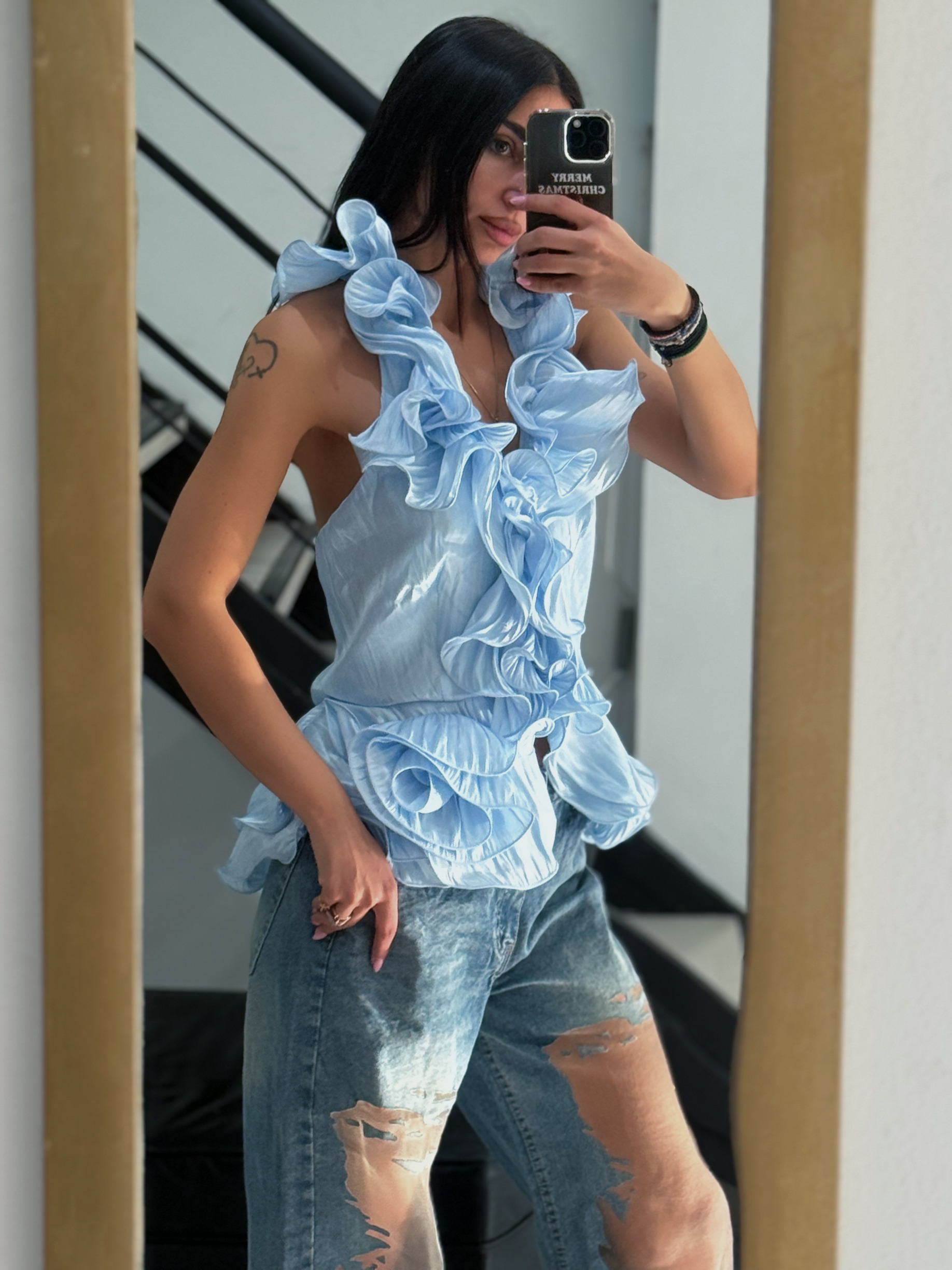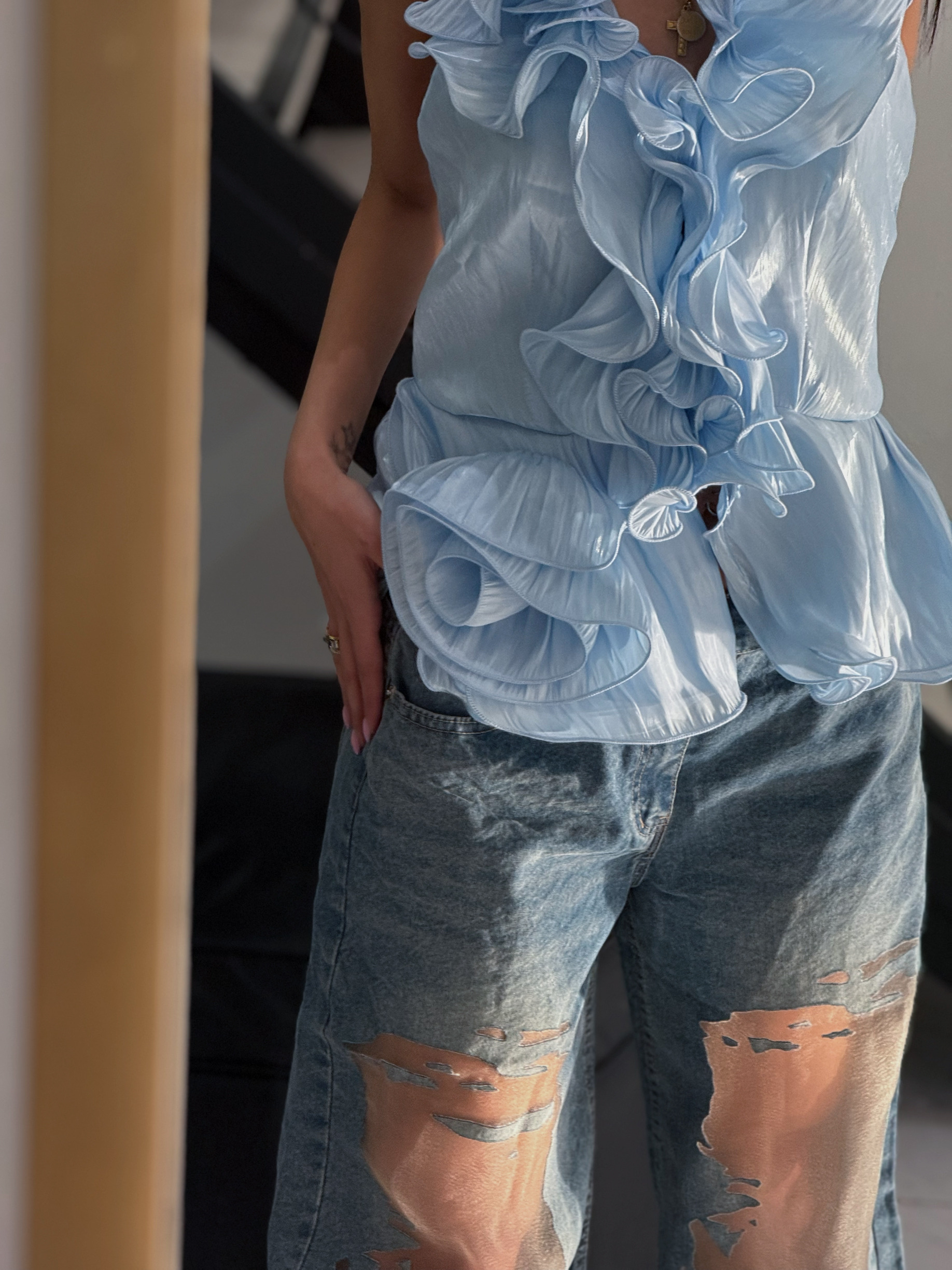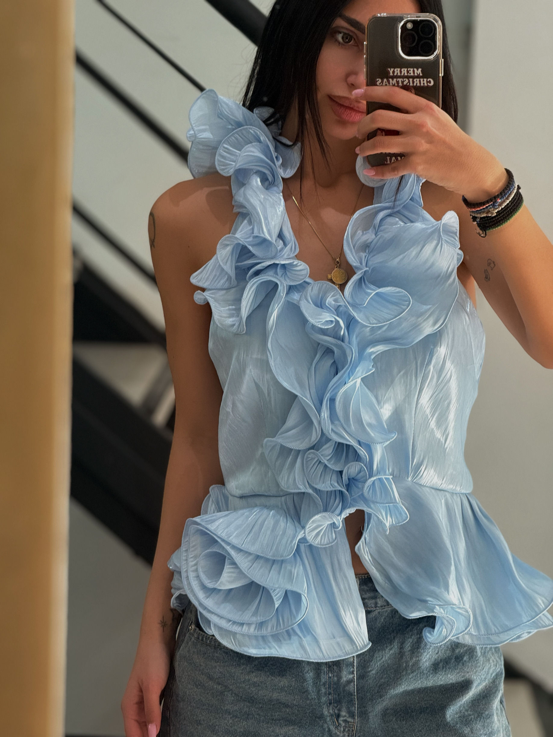 ΑΜΑΝΙΚΟ ΤΟΠ ΜΕ V ΛΑΙΜΟΚΟΨΗ ΑΝΟΙΧΤΗ ΠΛΑΤΗ ΚΑΙ ΛΕΠΤΟΜΕΡΕΙΑ ΜΕ ΒΟΛΑΝ ΣΕ ΟΛΟ ΤΟ ΜΠΡΟΣΤΙΝΟ ΜΕΡΟΣ