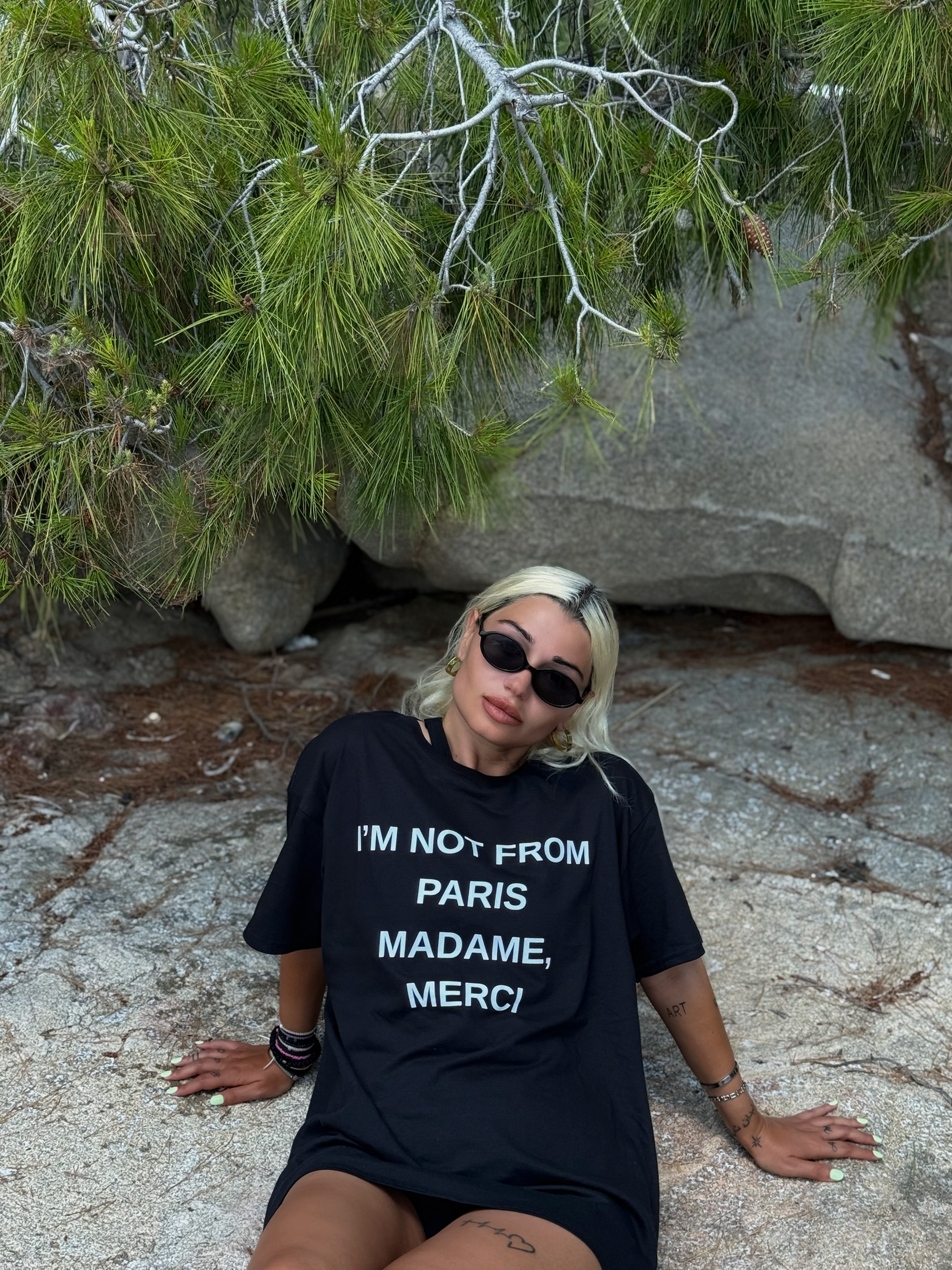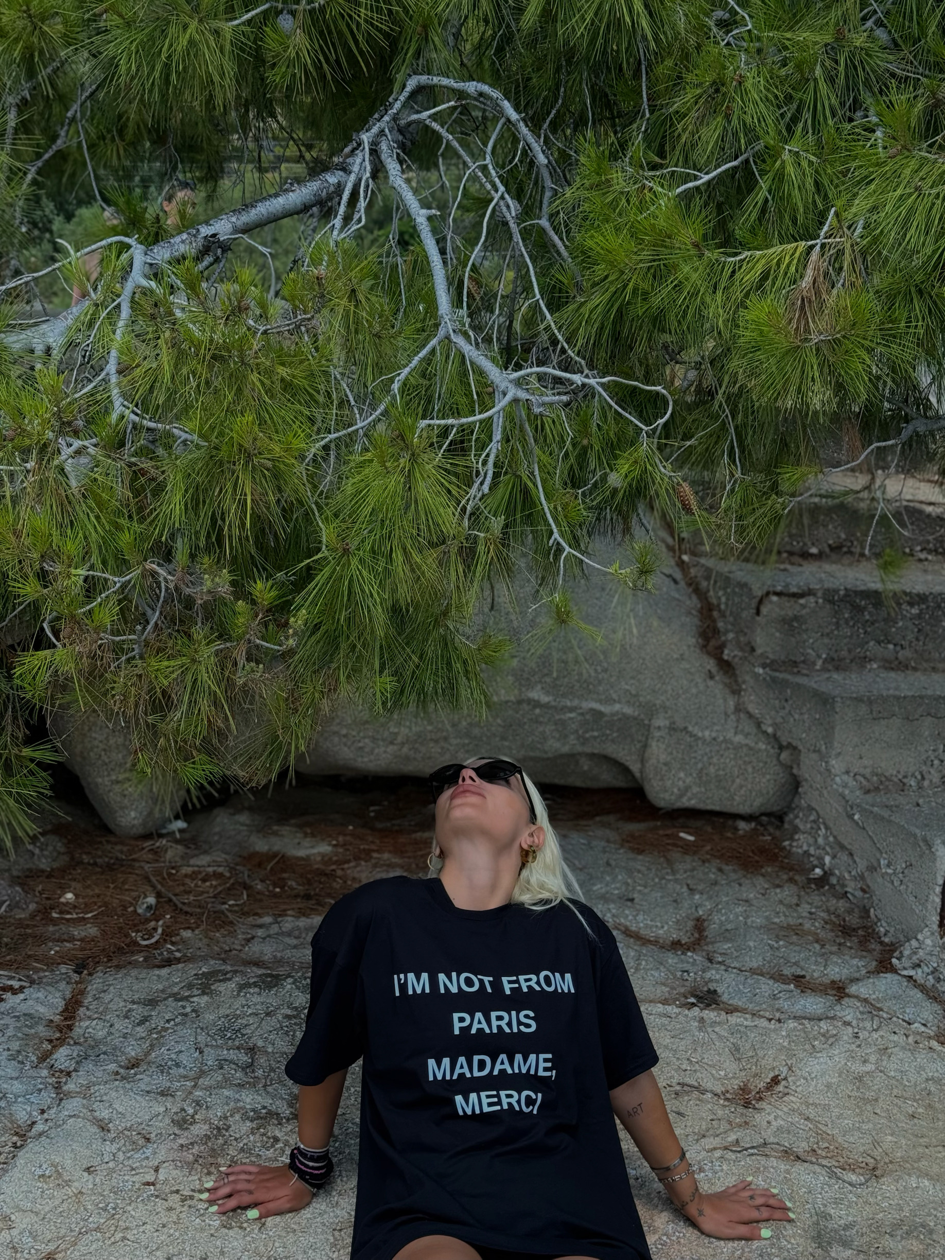 * Ι’Μ ΝΟΤ FROM PARIS *  ΜΑΥΡΟ ΒΑΜΒΑΚΕΡΟ Τ-SHIRT ΜΕ ΤΥΠΩΜΑ* Ι’Μ ΝΟΤ FROM PARIS * ΜΑΥΡΟ ΒΑΜΒΑΚΕΡΟ Τ-SHIRT ΜΕ ΤΥΠΩΜΑ