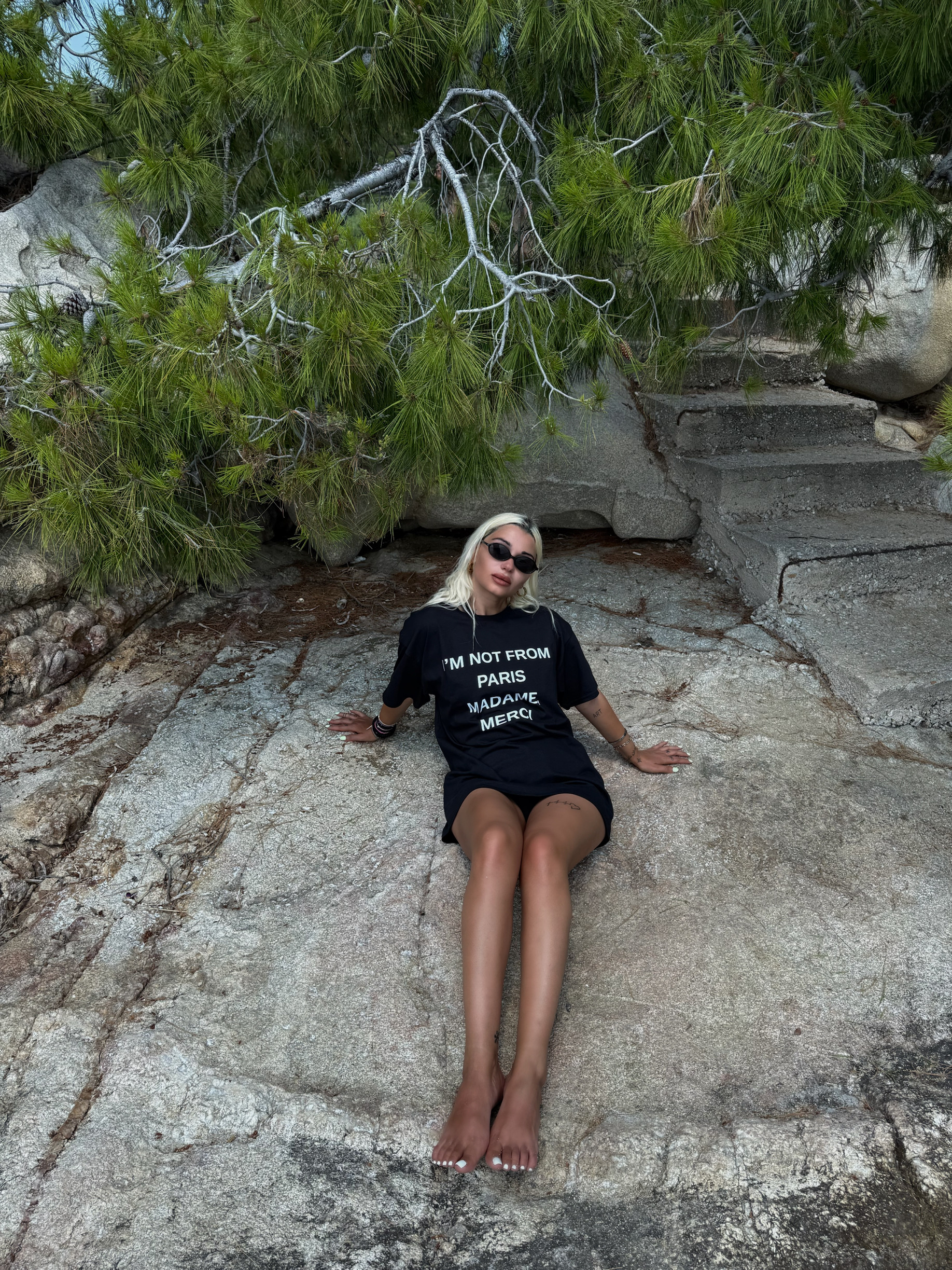 * Ι’Μ ΝΟΤ FROM PARIS * ΜΑΥΡΟ ΒΑΜΒΑΚΕΡΟ Τ-SHIRT ΜΕ ΤΥΠΩΜΑ