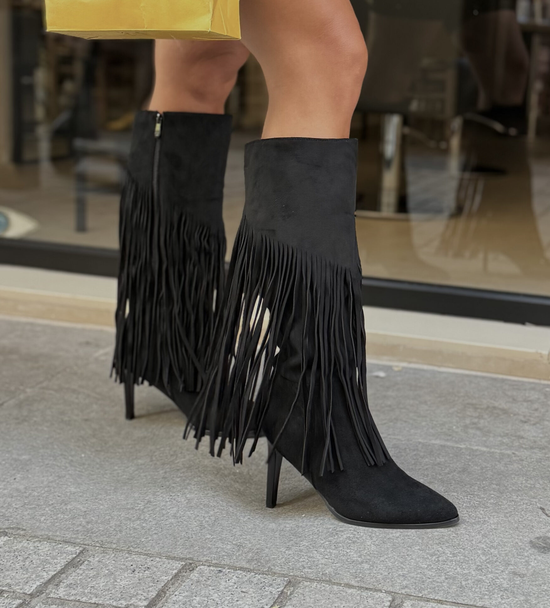 - ΚΟΜΨΗ ΒΟΗΟ CHIC ΨΗΛΗ ΜΠΟΤΑ ΣΕ ΜΑΥΡΟ ΣΟΥΕΤ ΑΠΟΧΡΩΣΗ ΜΕ ΕΝΤΥΠΩΣΙΑΚΕΣ ΛΕΠΤΟΜΕΡΕΙΕΣ ΑΠΟ ΚΡΟΣΣΙΑ ΠΟΥ ΧΑΡΙΖΟΥΝ ΚΙΝΗΣΗ ΚΑΙ WESTER ΔΙΑΘΕΣΗ