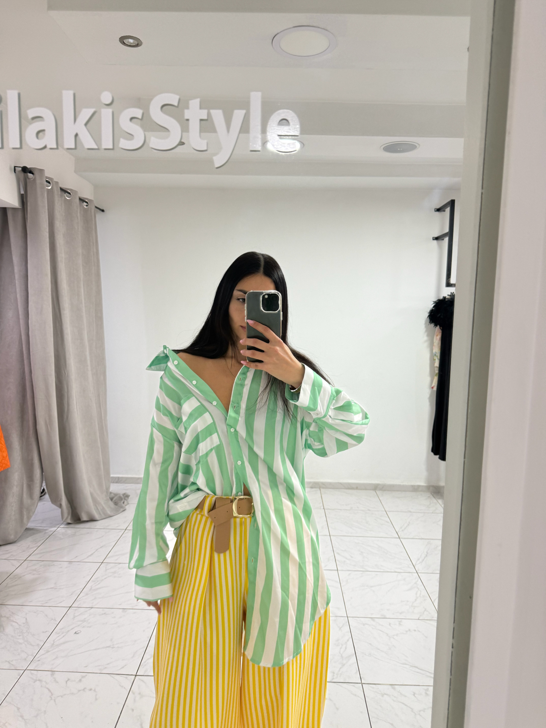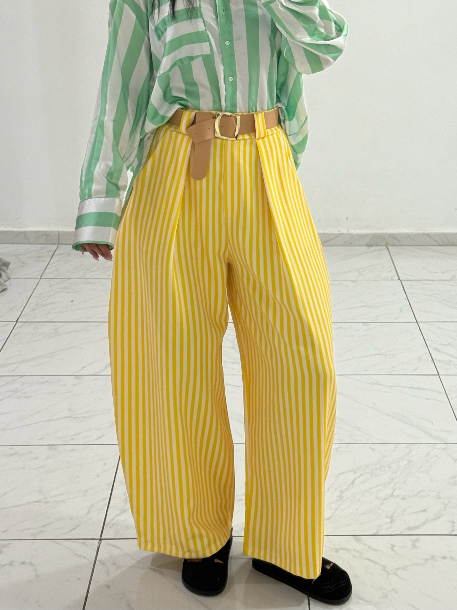 ΕΝΤΥΠΩΣΙΑΚΟ ΨΗΛΟΜΕΣΟ ΠΑΝΤΕΛΟΝΙ ΣΕ ΦΑΡΔΙΑ ΑΕΡΙΝΗ ΓΡΑΜΜΗ ΜΕ ΚΑΘΕΤΕΣ ΡΙΓΕΣ ΣΕ ΚΙΤΡΙΝΟ ΚΑΙ ΛΕΥΚΟ ΠΟΥ ΧΑΡΙΖΟΥΝ ΚΟΜΨΟΤΗΤΑ ΚΑΙ ΕΠΙΜΗΚΥΝΟΥΝ ΟΠΤΙΚΑ ΤΗ ΣΙΛΟΥΕΤΑ. ΔΙΑΘΕΤΕΙ ΠΙΕΤΕΣ ΜΠΡΟΣΤΑ ΓΙΑ ΑΨΟΓΗ ΕΦΑΡΜΟΓΗ ΚΑΙ ΣΥΝΟΔΕΥΕΤΑΙ ΑΠΟ ΖΩΝΗ ΠΟΥ ΤΟΝΙΖΕΙ ΤΗ ΜΕΣΗ ΚAΙ ΟΛΟΚΛΗΡΩΝΕΙ ΤΟ LOOK. TO ΕΛΑΦΡΥ TOY ΥΦΑΣΜΑ ΠΡΟΣΦΕΡΕΙ ΑΝΕΣΗ ΚΑΙ ΚΙΝΗΣΗ ΚΑΘΙΣΤΩΝΤΑΣ ΤΟ ΙΔΑΝΙΚΟ ΓΙΑ ΚΑΘΗΜΕΡΙΝΕΣ ΑΛΛΑ ΚΑΙ ΠΙΟ ΙΔΙΑΙΤΕΡΕΣ ΕΜΦΑΝΙΣΕΙΣ ENΩ ΣΥΝΔΥΑΖΕΤΑΙ ΕΥΚΟΛΑ ΜΕ ΠΟΥΚΑΜΙΣΑ Η’ TOP ΓΙΑ ΕΝΑ ΦΡΕΣΚΟ ΑΝΟΙΞΙΑΤΙΚΟ OUTFIT.