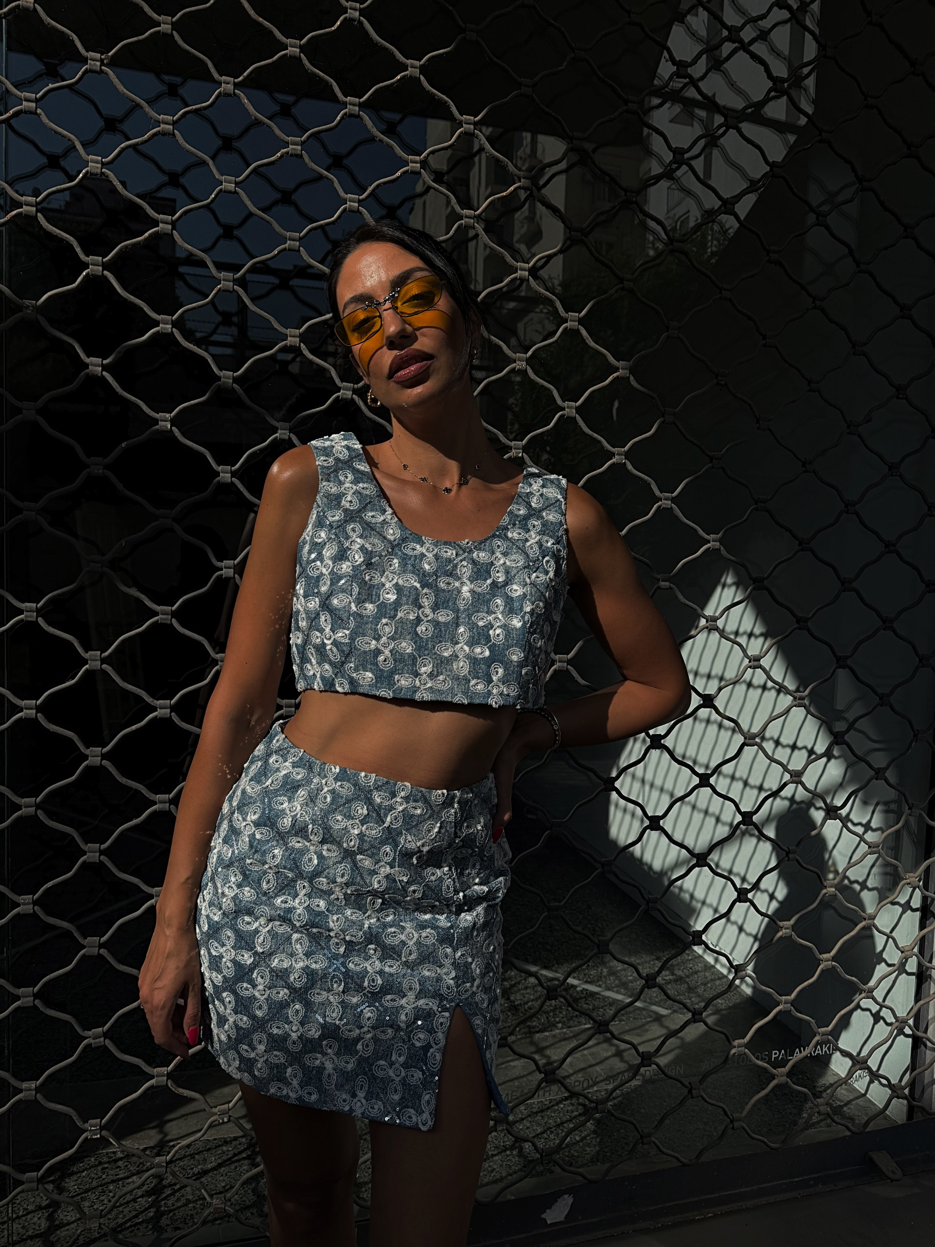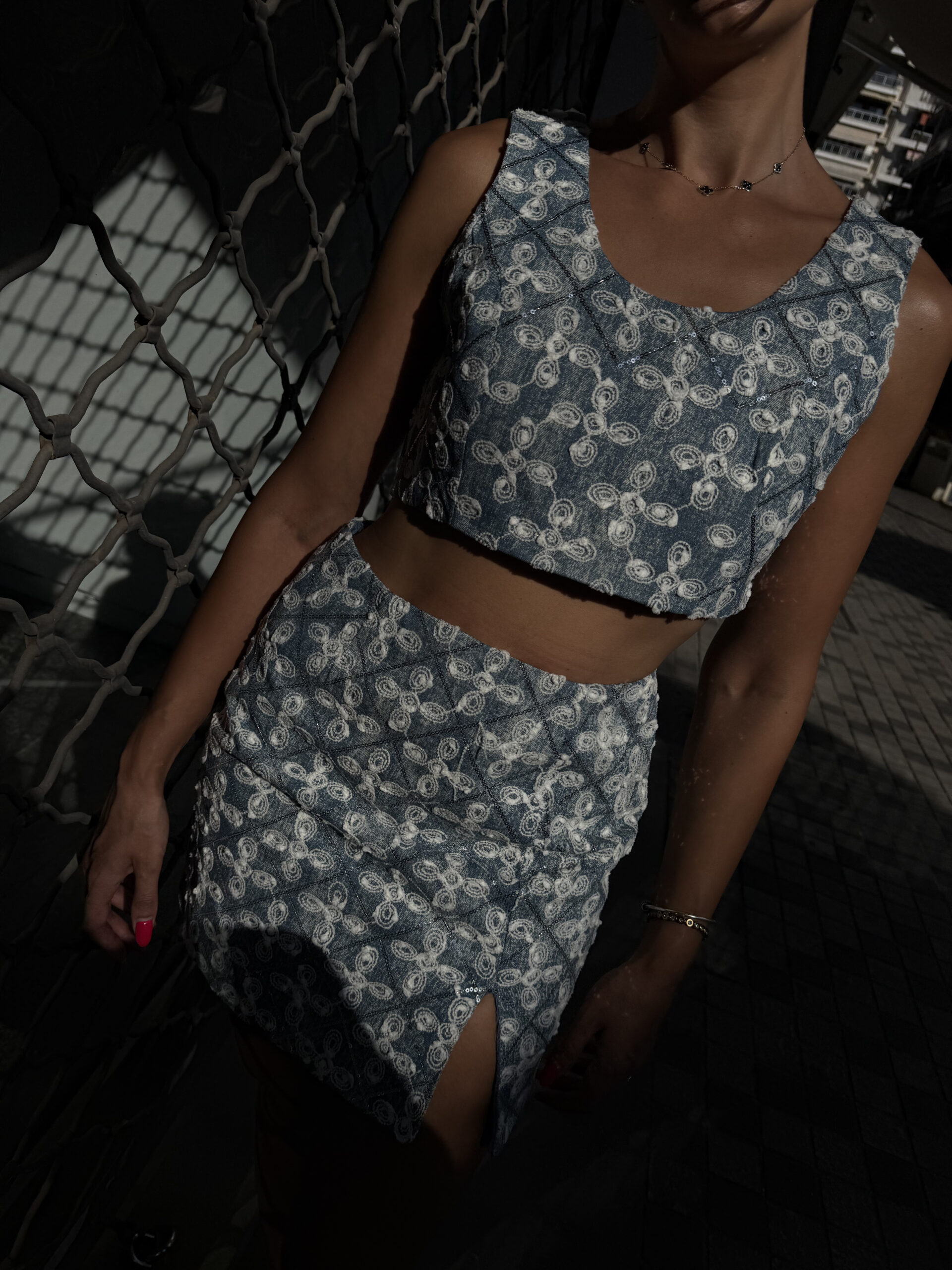 2 PIECES DENIM ΣΕΤ ME KENTHMA