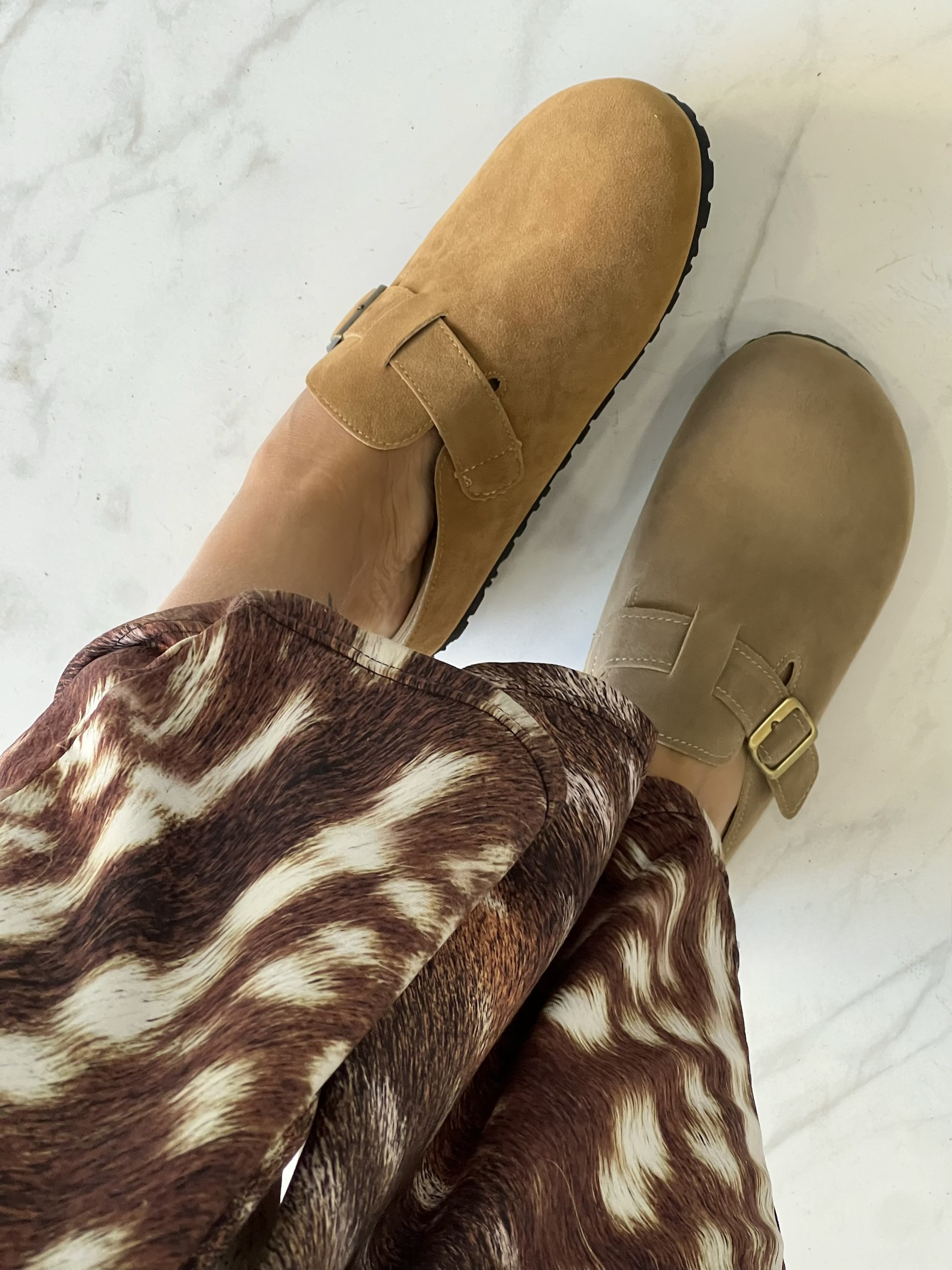 ΑΝΕΤΑ ΚΑΙ ΚΟΜΨΑ SUEDE CLOGS ΜΕ ΡΥΘΜΙΖΟΜΕΝΟ ΛΟΥΡΑΚΙ ΚΑΙ ΜΕΤΑΛΛΙΚΗ ΑΓΚΡΑΦΑ. ΙΔΑΝΙΚΑ ΓΙΑ ΚΑΘΕ ΕΠΟΧΗ ΠΡΟΣΦΕΡΟΥΝ ΣΤΗΡΙΞΗ ΚΑΙ ΣΤΥΛ ΣΕ ΚΑΘΕ ΕΜΦΑΝΙΣΗ.  ΔΙΑΘΕΣΙΜΑ ΣΕ 2 ΓΗΙΝΕΣ ΑΠΟΧΡΩΣΕΙΣ  – ΚΑΜΕΛ ΚΑΙ ΧΑΚΙ- ΓΙΑ ΝΑ ΤΑΙΡΙΑΖΟΥΝ ΕΥΚΟΛΑ ΣΕ ΚΑΘΕ ΝΤΥΣΙΜΟ ΑΠΟ CASUAL ΜΕΧΡΙ BOHO CHIC
