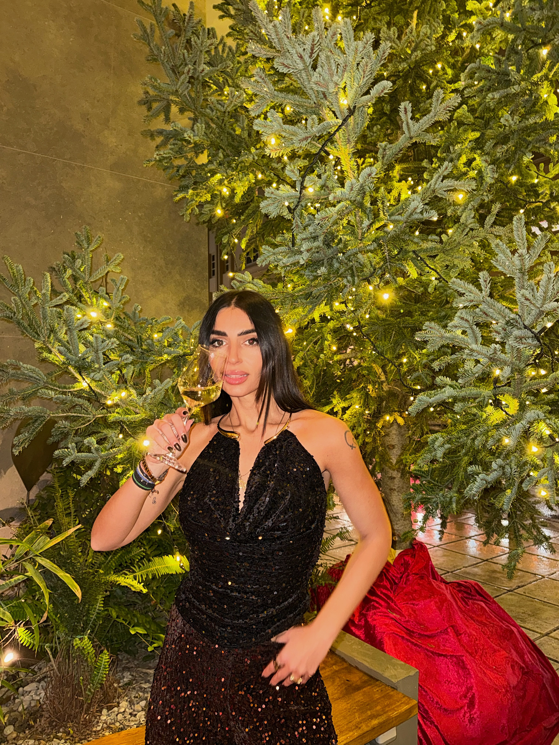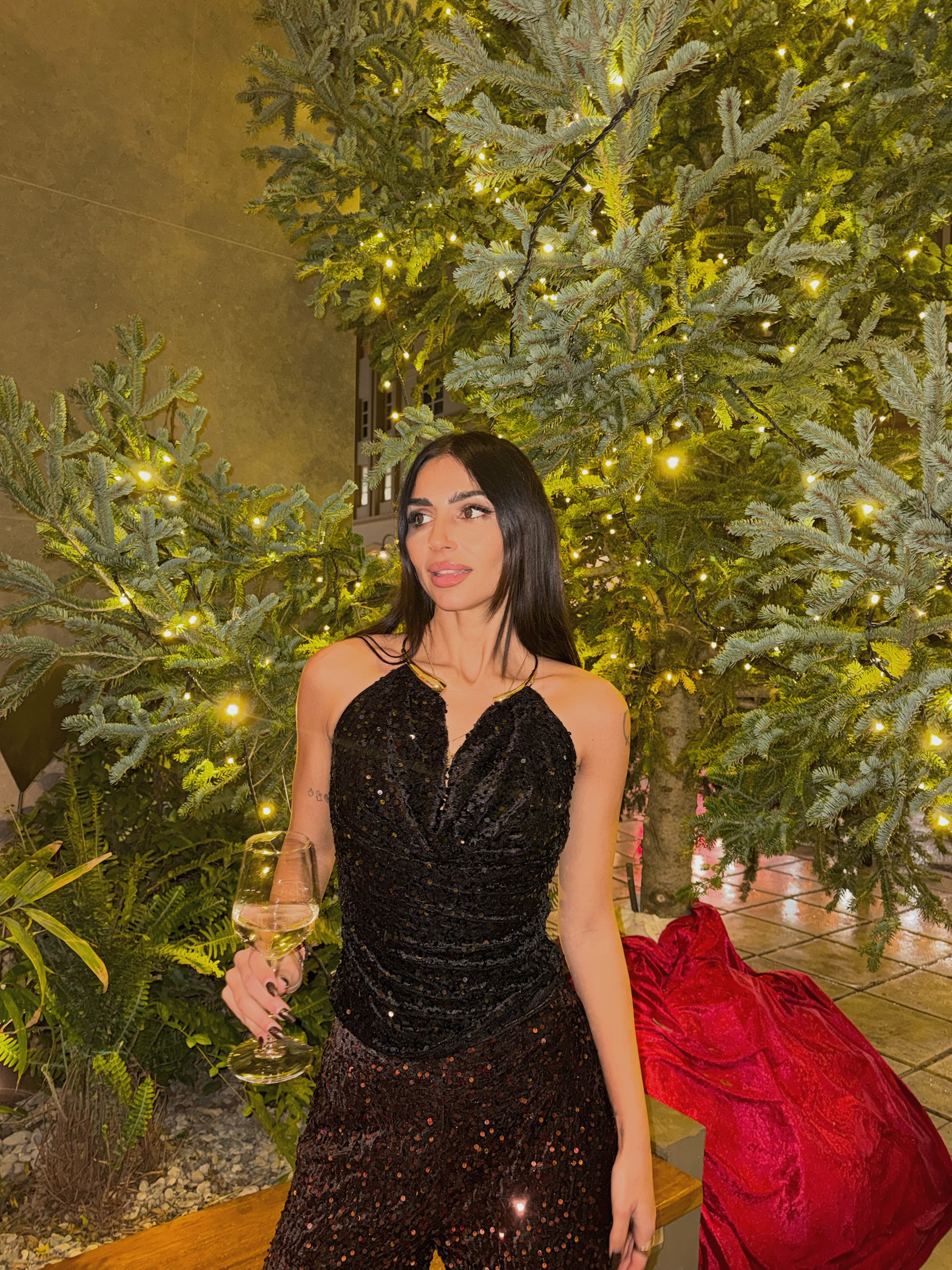 ΜΑΥΡΟ ΤΟΠ ΜΕ ΒΕΛΟΥΔΙΝΗ ΒΑΣΗ ΚΑΙ ΠΑΓΙΕΤΑ ΣΕ ΟΛΗ ΤΗΝ ΕΠΙΦΑΝΕΙΑ. ΕΞΩΠΛΑΤΟ ΚΑΝΕΙ ΝΤΡΑΠΕ ΜΠΡΟΣΤΑ ΣΤΟ ΣΤΗΘΟΣ ΕΝΩ ΔΙΑΘΕΤΕΙ ΧΡΥΣΟ ΤΣΟΚΕΡ ΣΤΟ ΛΑΙΜΟ. ΑΚΡΩΣ ΕΝΤΥΠΩΣΙΑΚΟ ΓΙΑ ΜΙΑ ΓΙΟΡΤΙΝΗ ΕΜΦΑΝΙΣΗ ΠΟΥ ΣΙΓΟΥΡΑ ΘΑ ΕΝΤΥΠΩΣΙΑΣΕΙ!