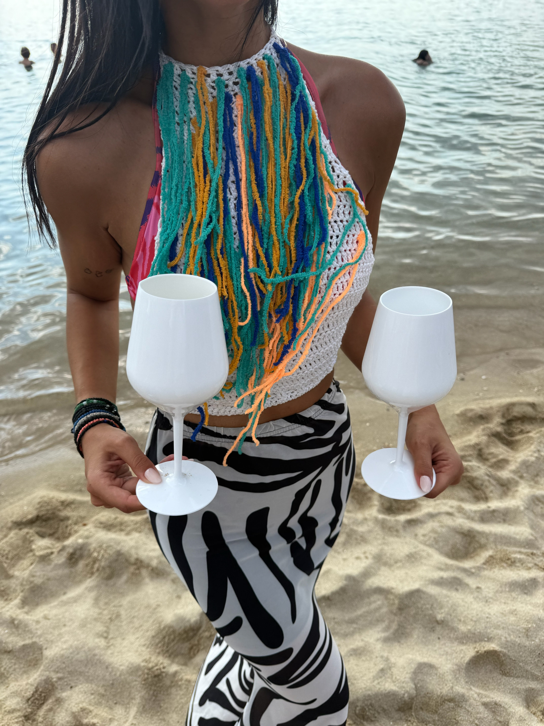 - HALTERNECK CROCHET TOP WITH COLORFUL FRINGES