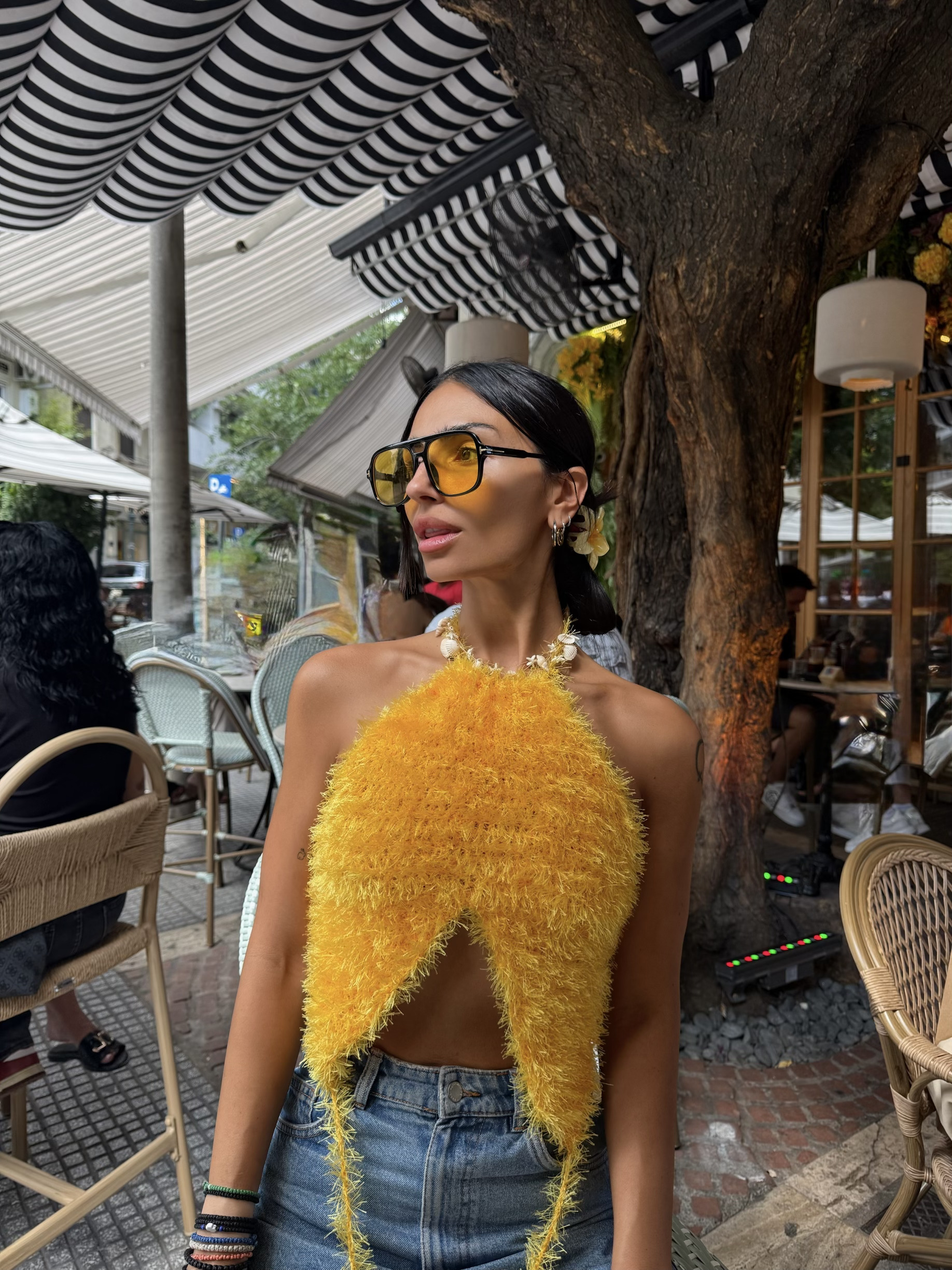*GOLDEN YELLOW * HALTERNECK CROCHET TOP