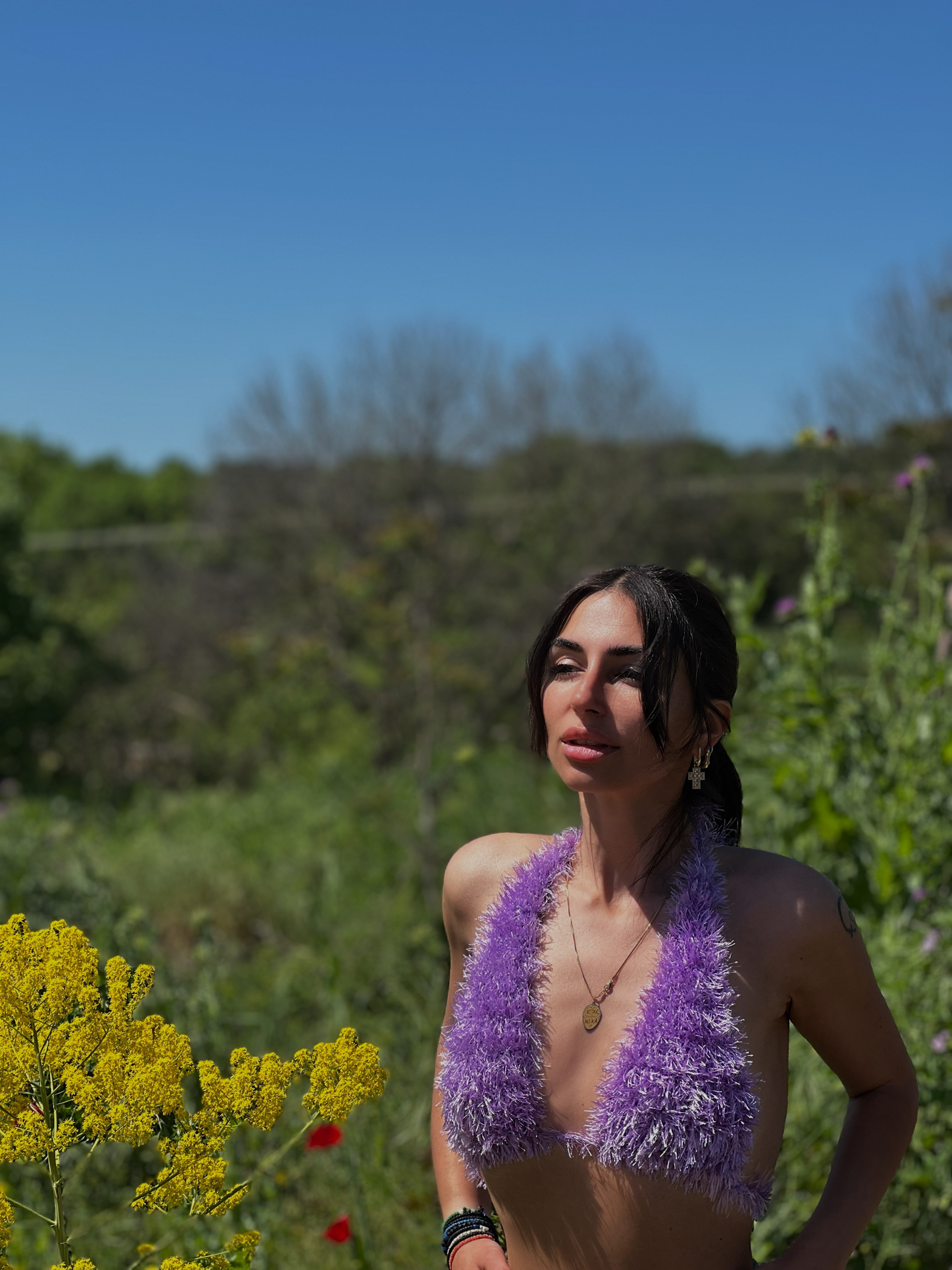 LILAC FLUFFY CROCHET TRIANGLE TOP