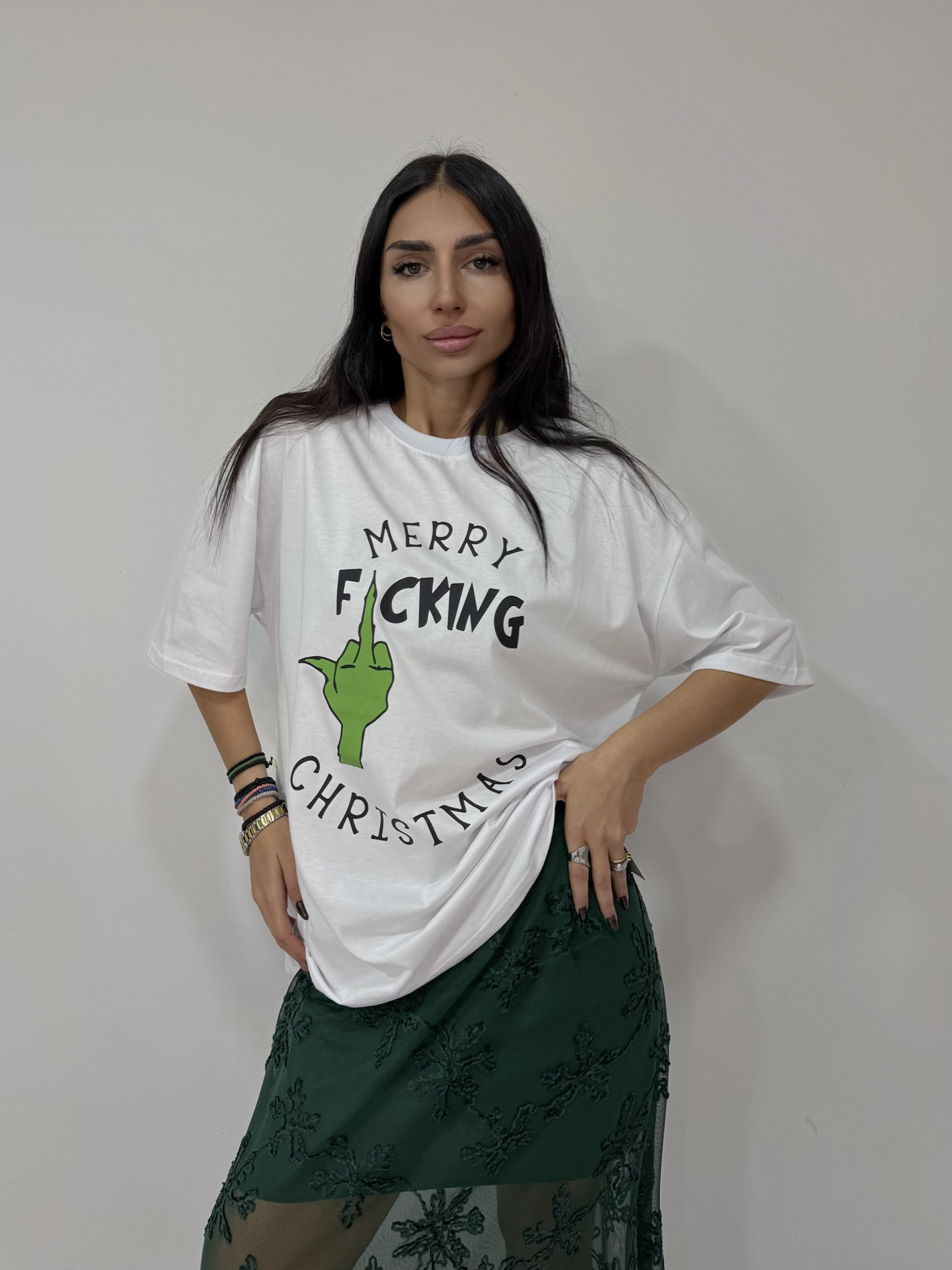 MERRY F*CKING CHRISTMAS T-SHIRT . ΔΙΑΘΕΤΕΙ ΣΤΟ ΠΙΣΩ ΜΕΡΟΣ PRINT ΜΕ ΤΟΝ GRINCH