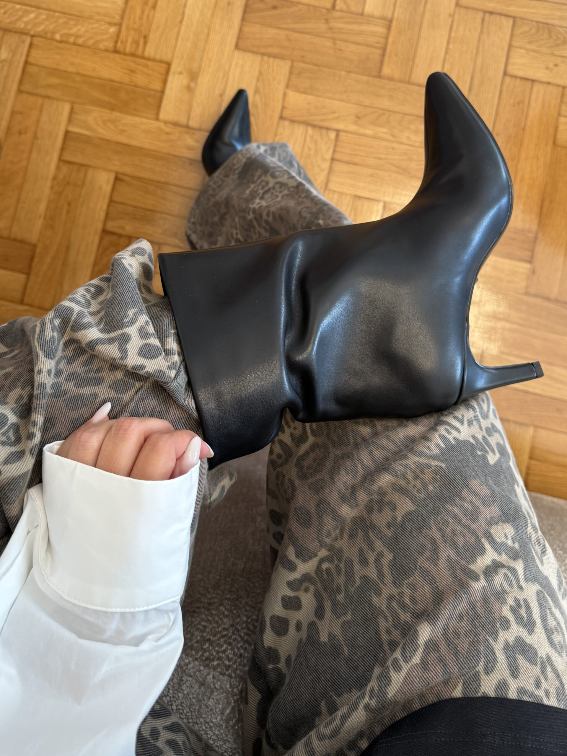 KOMΨΑ ΜΑΥΡΑ ΜΠΟΤΑΚΙΑ ΑΠΟ ΟΙΚΟΛΟΓΙΚΟ ΠΟΛΥ ΜΑΛΑΚΟ ΔΕΡΜΑ ΜΕ ΜΥΤΕΡΗ ΜΥΤΗ ΚΑΙ ΛΕΠΤΟ ΤΑΚΟΥΝΙ ΜΕΣΑΙΟΥ ΥΨΟΥΣ. MINIMAL ΣΧΕΔΙΑΣΜΟΣ ΜΕ ΧΑΛΑΡΟΤΗΤΑ ΣΤΟ ΚΟΨΙΜΟ ( ΤΟΥ ΛΑΙΜΟΥ ) ΔΙΝΟΝΤΑΣ ΜΙΑ ΜΟΝΤΕΡΝΑ ΚΑΙ ΚΟΜΨΗ ΑΙΣΘΗΤΙΚΗ. Η ΑΝΕΣΗ ΤΟΥ ΠΡΟΣΦΕΡΕΙ ΤΗΝ ΔΥΝΑΤΟΤΗΤΑ ΝΑ ΦΟΡΕΘΕΙ ΑΠΟ ΤΟ ΠΡΩΙ ΜΕΧΡΙ ΤΟ ΒΡΑΔΥ ΑΚΟΜΑ ΚΑΙ ΣΕ ΕΠΙΣΗΜΕΣ ΕΜΦΑΝΙΣΕΙΣ