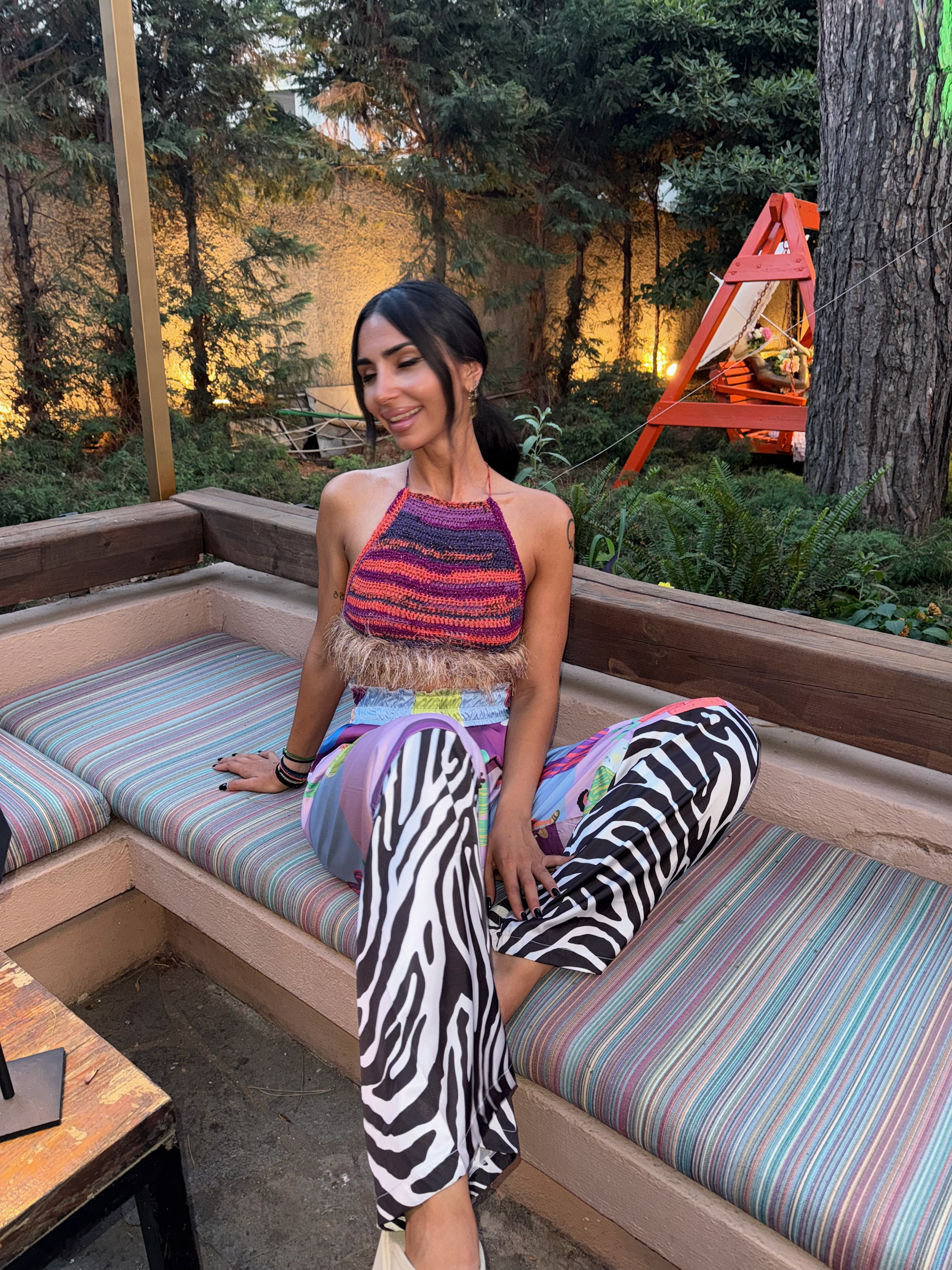 - ΠΟΛΥΧΡΩΜΗ ΠΛΕΞΗ ΣΕ ΜΩΒ-ΡΟΖ ΤΟΝΟΥΣ ΣΕ ΟΛΗ ΤΗΝ ΕΠΙΦΑΝΕΙΑ ΚΑΙ FLUFFY-ΚΡΟΣΣΙ DETAIL ΣΤΟ ΤΕΛΕΙΩΜΑ